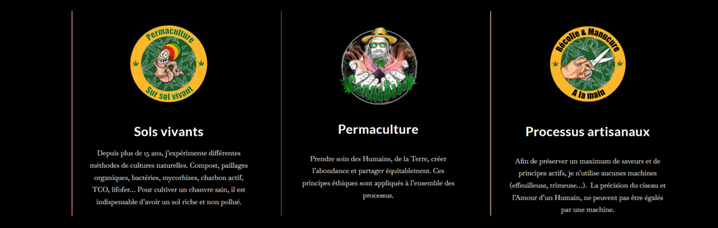 Le chanvre est produit en sol vivant et suivant les principes de la permaculture, le tout en extérieur et sous serre dans les Cévennes.