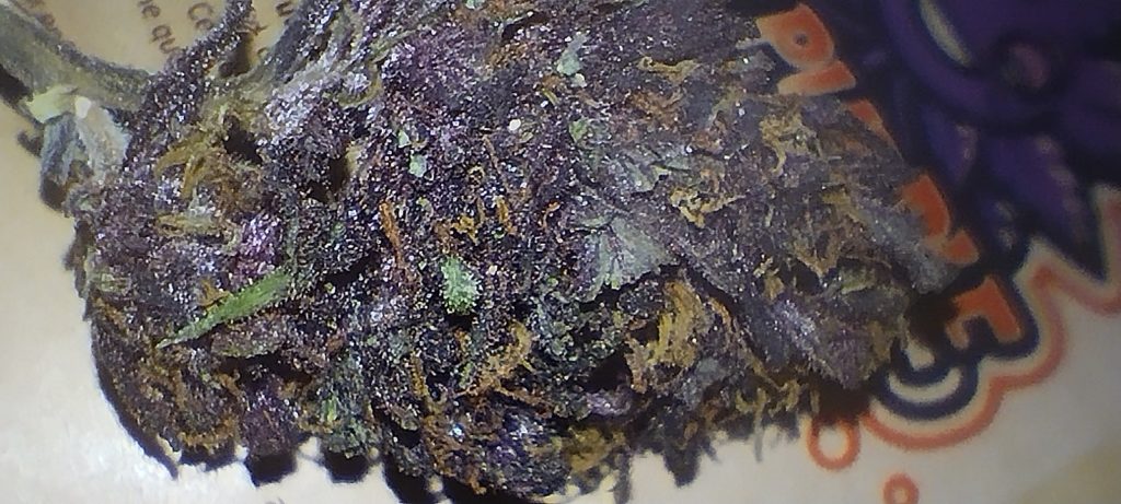 Son aspect est peut-être son point fort. Un violet profond avec des longs pistils orange claire, des trichomes bien blancs qui cristallisent le tout, un régal pour les yeux. Les fleurs sont petites mais la bud reste bien compacte, séchée pile comme il faut et la manucure est nickel. Elle craque sous les doigts, un vrai plaisir et au grinder, c’est toujours un kif de voir ces amas violets avec de légères nuances vertes et blanches à l’intérieur.