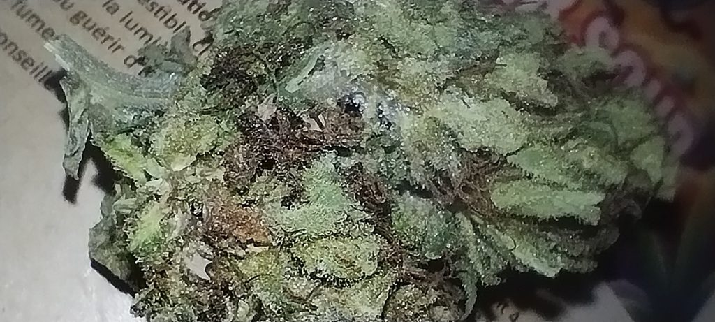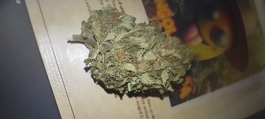 Encore une dont le point fort est le goût. C’est complexe à expliquer, autant que c’est plaisant. Il y a vraiment un air de bonbon acidulé, avec un côté vinaigré sur le fond de la langue et un retour légèrement sucré. C’est doux en bouche et piquant au nez à la foi, avec un léger hit en gorge, vraiment j’aime beaucoup et ça donne envie d’analyser chaque bouffée. J’ai du mal as mettre un mot sur le goût de bonbon, entre l’arlequin et l’orange, ou les agrumes, le genre de weed où tout ce qu’on trouve a dire aux copains c’est “goûte”.
