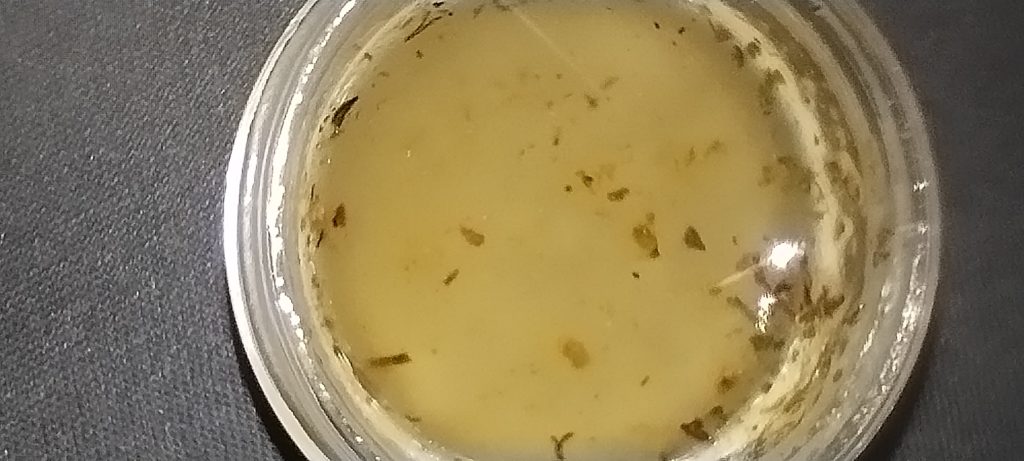 Ahhh j’aurais aimé en avoir une grosse bud, mais c’est la qualité qui compte et elle est là. Une odeur poivrée/épicée domine à l’ouverture du bag, avec un fond fruité légèrement acide. Comme des agrumes et un peu de citron vert, accompagné d’une forte note de pin, avec un peu plus de sucre elle aurait un air de bonbon type “la Vosgienne”. J’aime beaucoup son odeur, c’est très spécifique et c’est un plaisir d’avoir des strains qui se démarque des terps habituels. Ça met vraiment l’eau à la bouche.