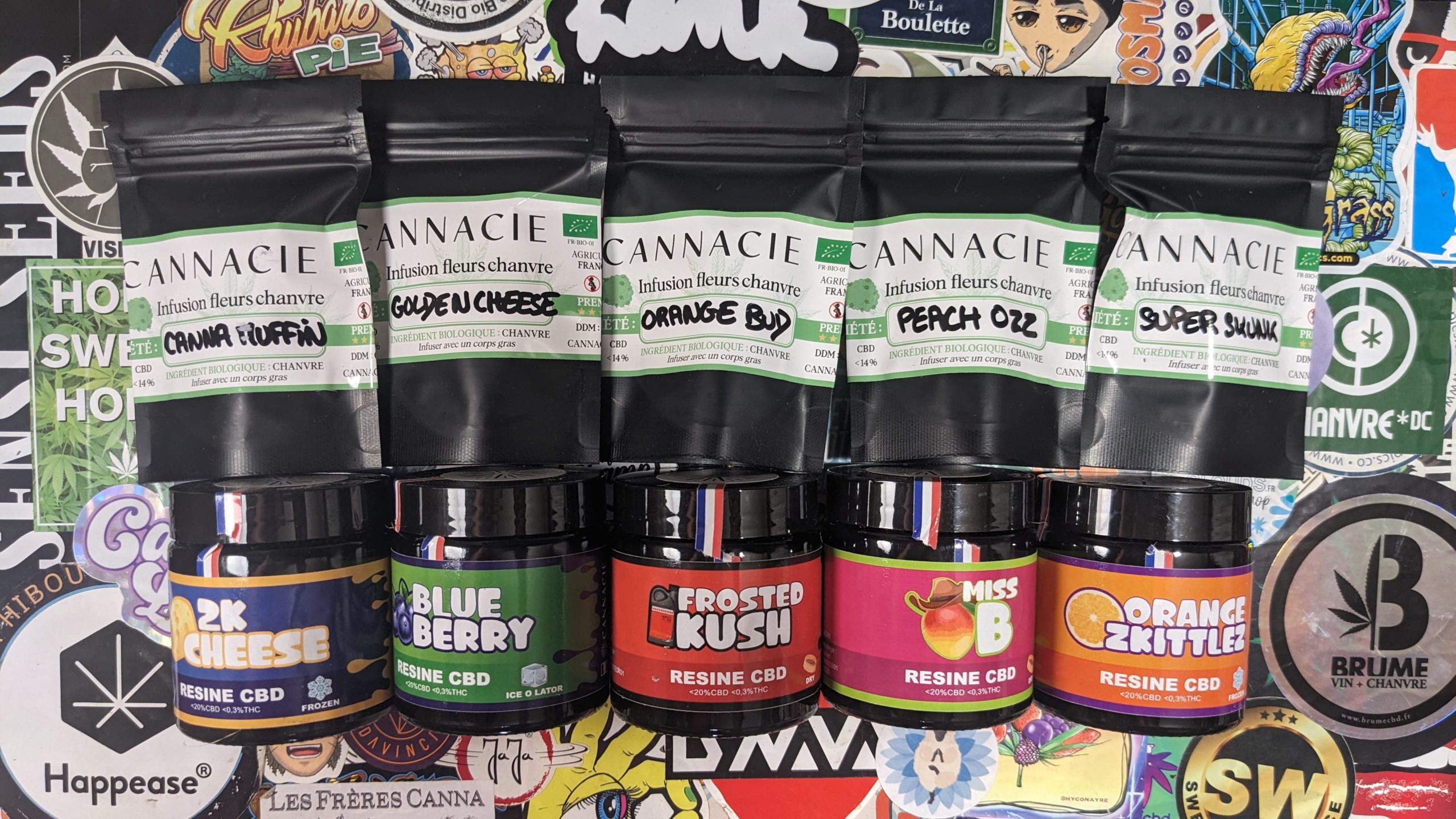 On se régale chez Cannacie, tout est beau et bon. J’ai des petites préférences personnelles pour la Peach Ozz et le hash Blueberry. Merci pour les jarres !