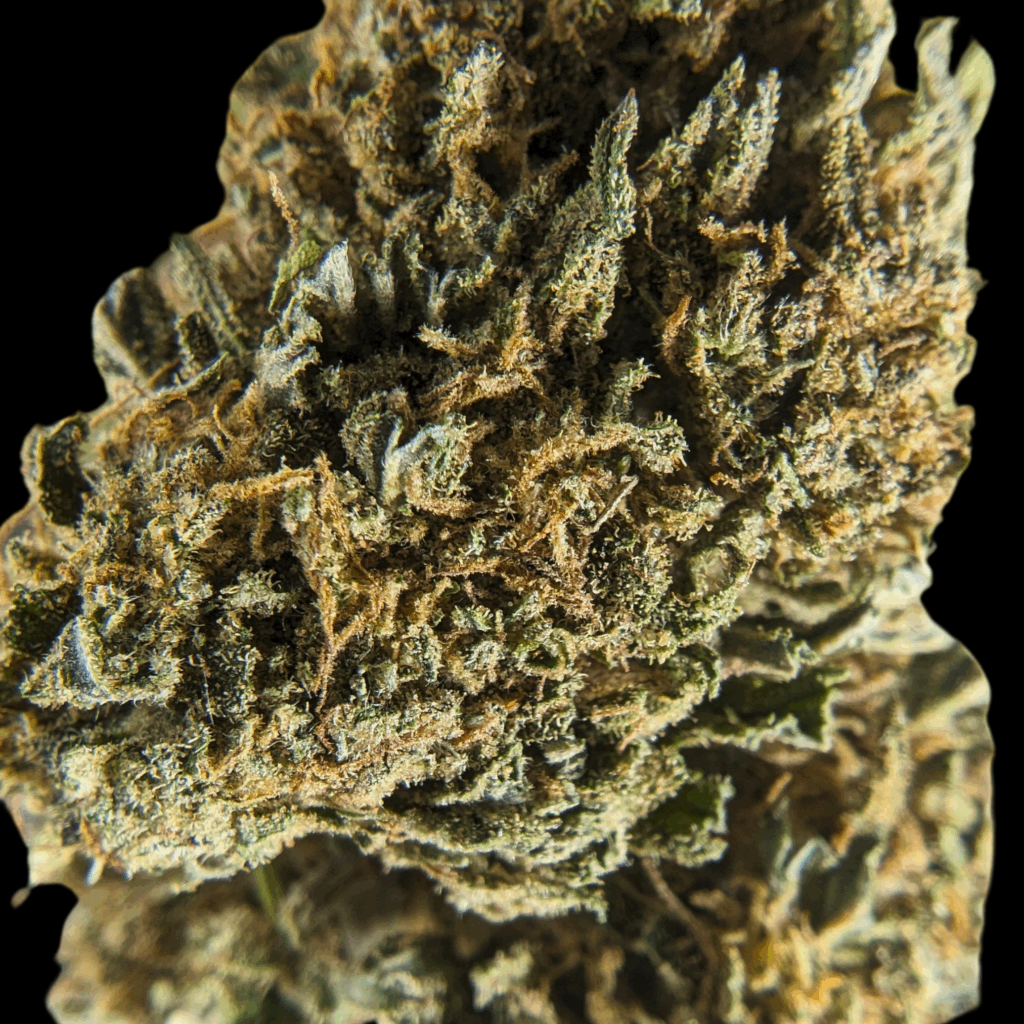 Orangé, légèrement terreux, c’est ce que j’ai dès l’ouverture. Grindée c’est pareil, on reste dans des vibes orangées, c’est doux, un peu sucré. Côté visuel les têtes ressemblent aux autres. C’est de taille moyenne, dense, vert, manucuré de près, moelleux… Les trichomes sont ambrés, les glandes mi ambrées mi laiteuses. En bouche les premières notes sont bien dans l’orange, avec une petite acidité bien plaisante. En montant en température, le bouquet gagne en terreux. C’est dans la lignée des deux premières, j’ai peut être même une préférence personnelle pour celle-ci.