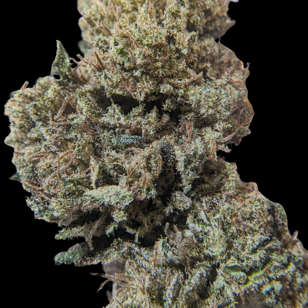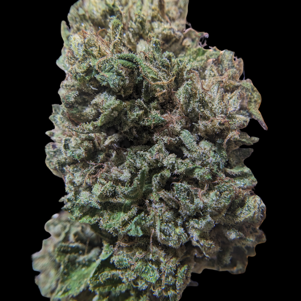 Un peu moins denses que les précédentes, bien vertes, pleines de trichomes longs et ambrés, de glandes mi laiteuses mi ambrées. C’est bien manucuré et bien moelleux niveau humidité.