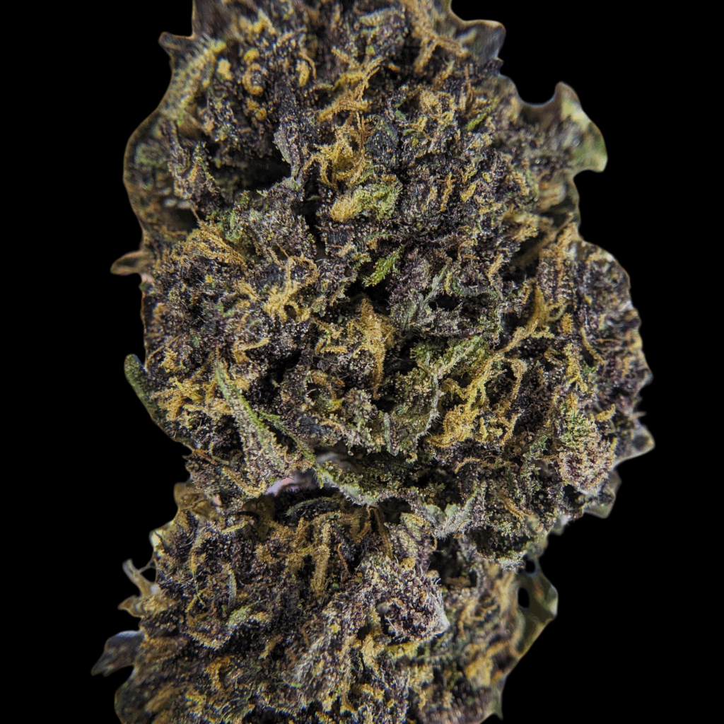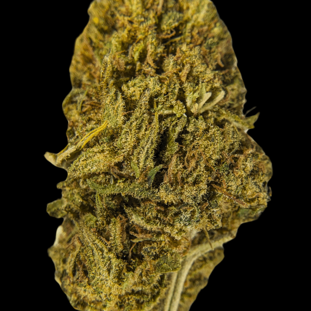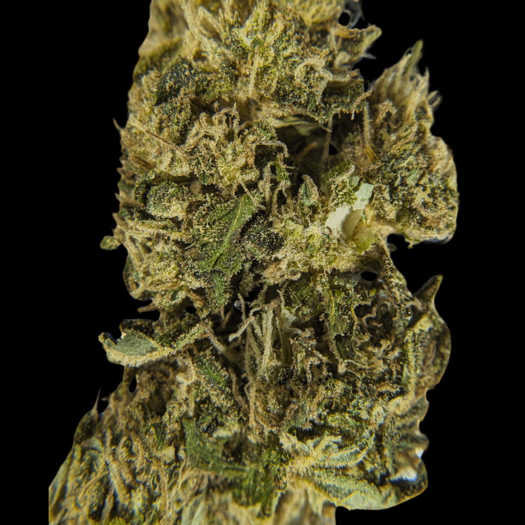 Dès l’ouverture, il y a un côté chewing gum, bonbon, qui penche sur la fraise, la framboise, les fruits rouges. C’est doux, presque un côté barbe à papa tout en ayant un peu de chlorophylle. La tête est bien dense, dodue, elle a du vert qui tend un peu vers le foncé/marron. C’est plein de trichomes assez courts et de glandes bien ambrées, elle est bien résineuse. Pas plus niveau manucure d’ailleurs !