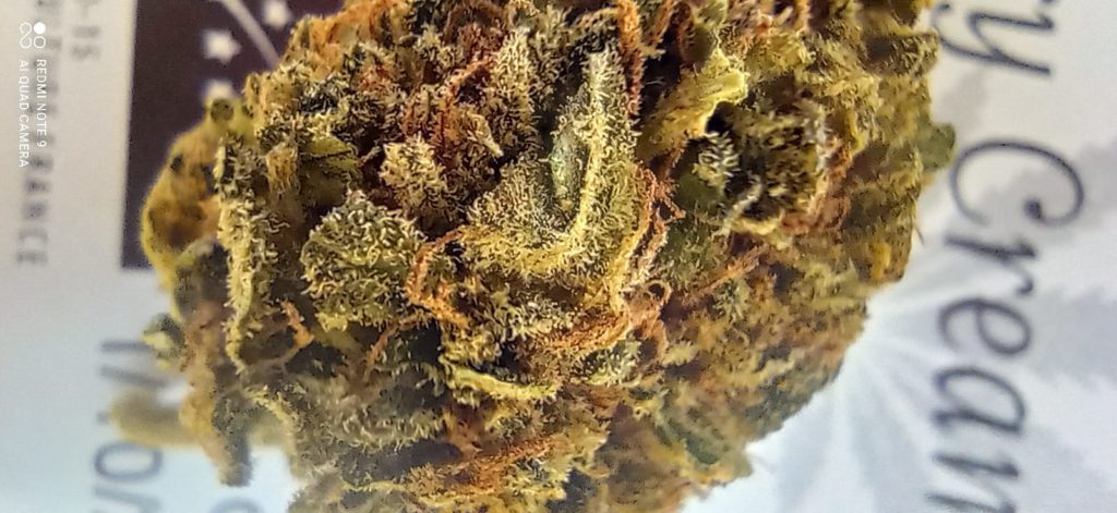 A mi-chemin entre la lemon cookie et la blue diesel, très sympathique. A l’ouverture c’est très hazy, floral et un peu fruité avec un fond de biscuit, des notes d’agrumes, c’est frais. C’est doux pour ce genre de terps. C’est pas très sucré, mais pas de quoi lui en tenir rigueur.