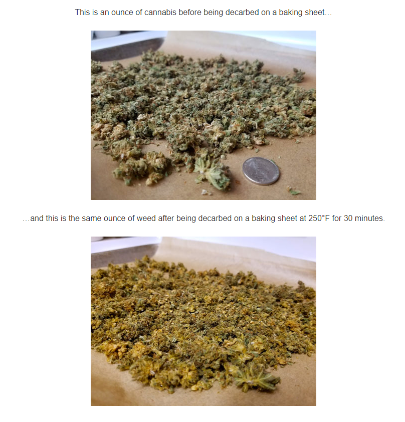 La décarboxylation est une étape simple pour activer le CBD dans le cannabis. Préchauffez votre four entre 90°C et 150°C (voir article décarboxylation) selon votre préférence, étalez vos têtes de cannabis sur une plaque de cuisson et faites-les cuire au four. Le temps de cuisson varie en fonction de la température. Optez pour 30-60 minutes à 90°C et 15 minutes si vous mettez votre four à 150°C.
