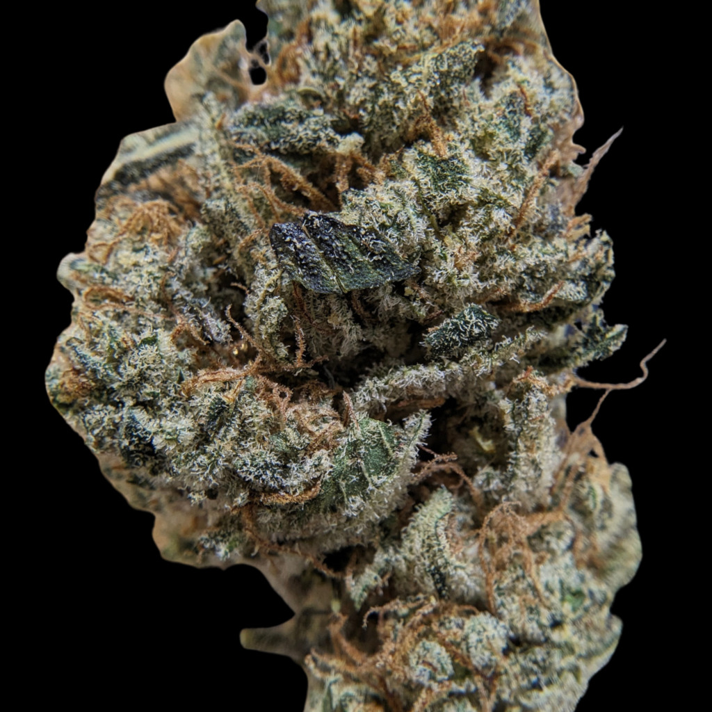 Tête assez claire et compacte, recouverte de glandes laiteuses et de trichomes ambrés assez longs et préservés. C’est manucuré ce qu’il faut, encore quelques feuilles à sucre ici et là.