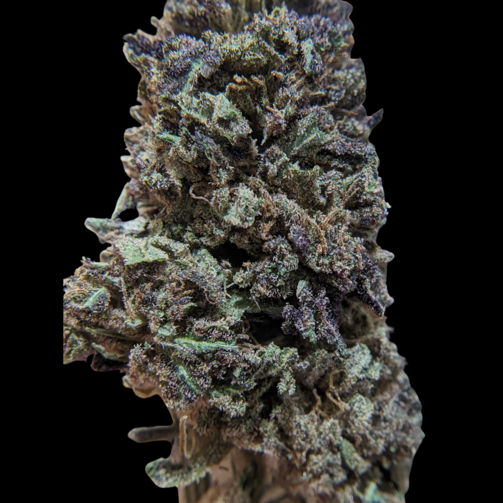 Deux phénotypes, un vert et un violet. Les têtes sont belles, moelleuses et craquantes, du trichome ambré, de la glande laiteuse, une manucure assez serrée, c’est dense… RAS.