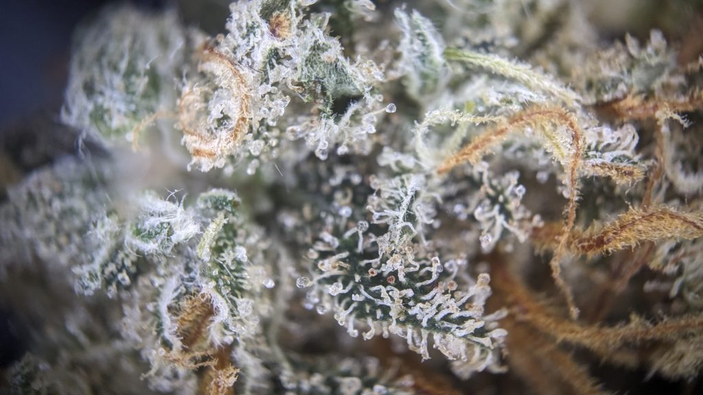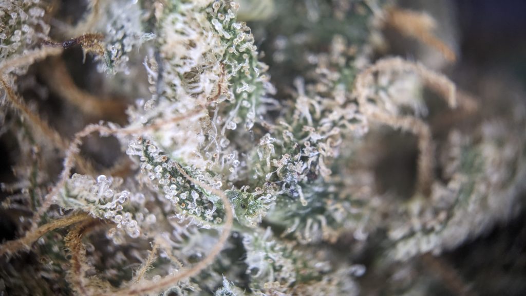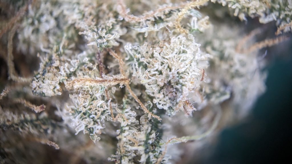 Fraise, crème, très résineuse ? C’est les deux arômes qui me viennent juste en ouvrant le sachet. La tête est moyenne/grosse, dense, verte très claire vu les glandes laiteuses qui la recouvrent. Les trichomes sont bien présents et ambrés. C’est manucuré juste ce qu’il faut, vraiment du beau travail.