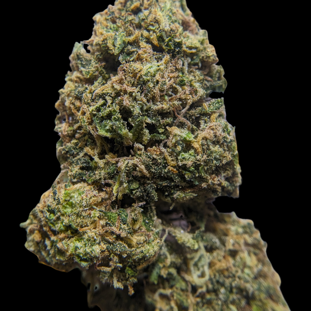 Manucure militaire, c’est bien serré comme aux USA, des têtes moyennes, denses, avec plusieurs tons de vert. Trichomes ambrés, glandes surtout ambrées, assez sec ça s’effrite aisément aux doigts.