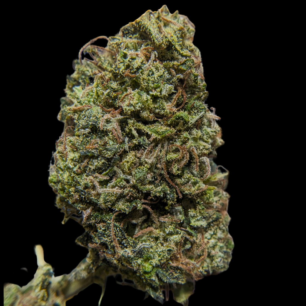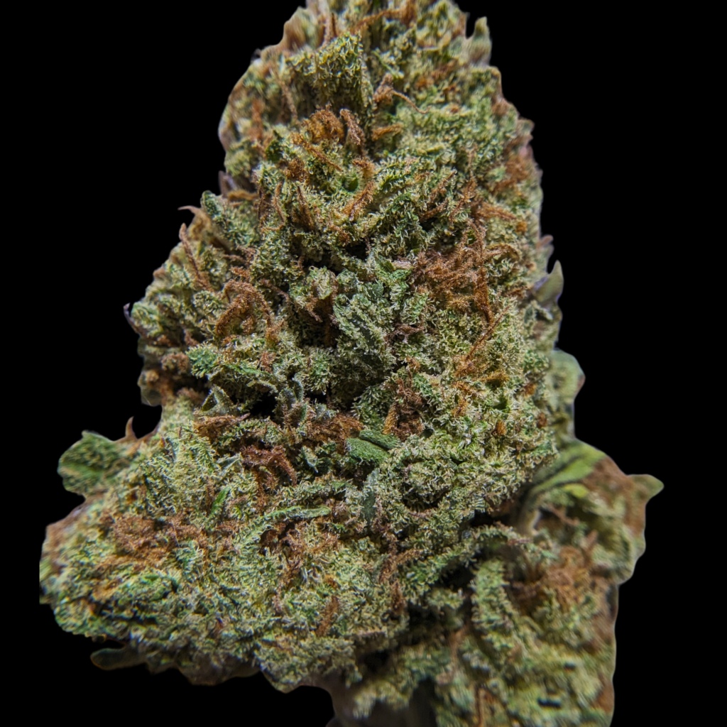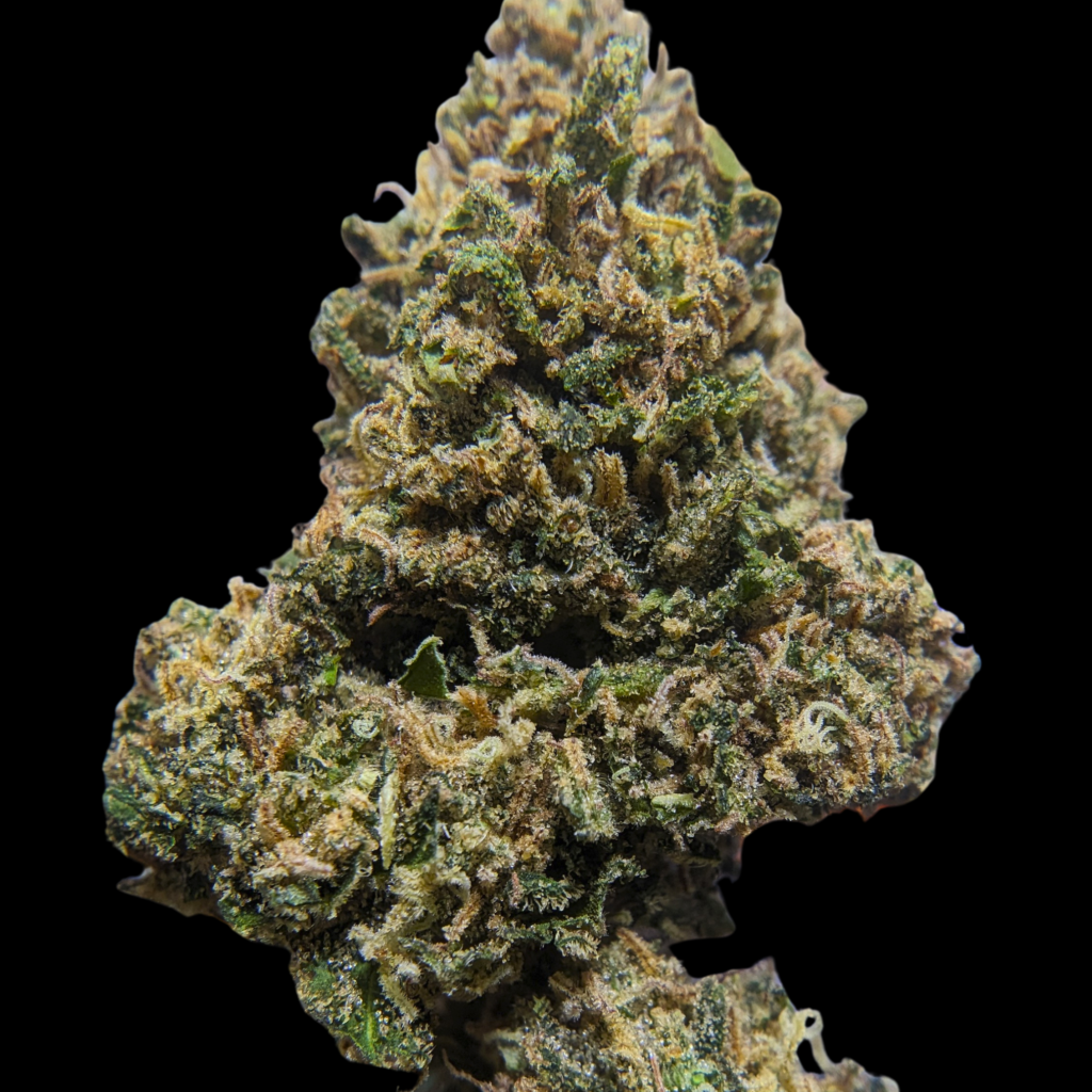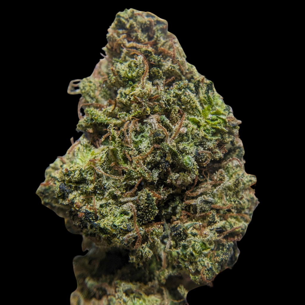 Tête assez grosses, ou plutôt longues, bien denses, violettes, un peu vertes, des trichomes ambrés de partout, des glandes laiteuses. La manucure est bien serrée, et bien qu’elle soit dense, elle a du moelleux, ça craque pas trop.