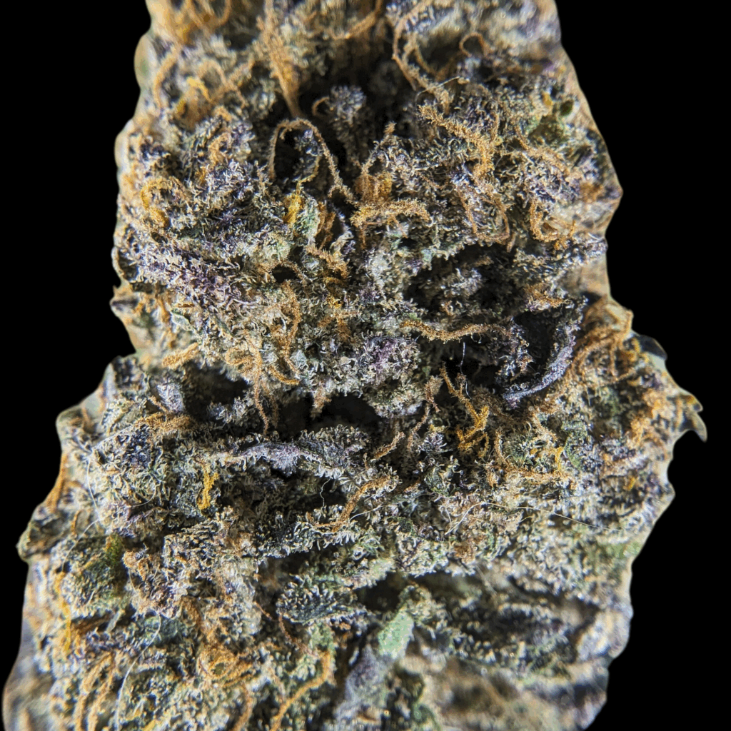 Rôti, viande froide, mais direct ! C’est ouf cette odeur qu’elle a. En reniflant encore et en l’aérant, elle montre des tons de fruits violets, genre raisin, cassis, mûre. Elle a aussi une petite acidité qui évoque le bonbon. Dinguerie. La tête est immense, surement la plus belle du lot d’ailleurs. C’est du sacrément propre ! Les trichomes sont bien présents et ambrés. Les glandes sont laiteuses et vraiment très présentes. C’est recouvert d’un voile blanc haha. Wow. Grindée je trouve que le côté fruit/baie violette et bonbon s’intensifient.