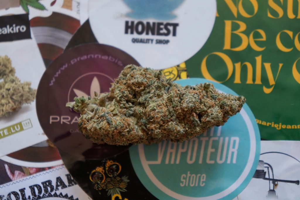Bon déjà c’est indéniable le packaging est bien fait, petite boite avec fermeture aimantée, le design est cool, sobre. C’est plutôt pas mal, ça sent bon, ça goute bon aussi. On est bien sur un côté kushy avec une légère banane. Pour comparer à Golden Buds je dirais que les gouts sont un peu plus riches, plus complexes. Les effets houla, ça met une claque. Faut y aller molo. J’ai tiré quelques lattes dont une assez grosse (petites lattes c’est ce qui est conseillé pour garder un bon goût et un hit agréable) j’ai pris cher !