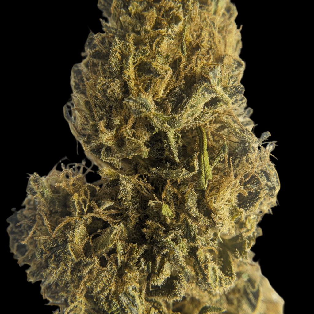 Visuellement c’est bien joli, une tête assez grosse, bien belle, elle a un beau vert, de jolis trichomes ambrés, des glandes mi laiteuses mi ambrées. C’est bien manucuré, un peu dense tout en étant moelleux.