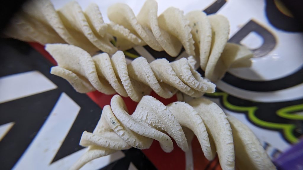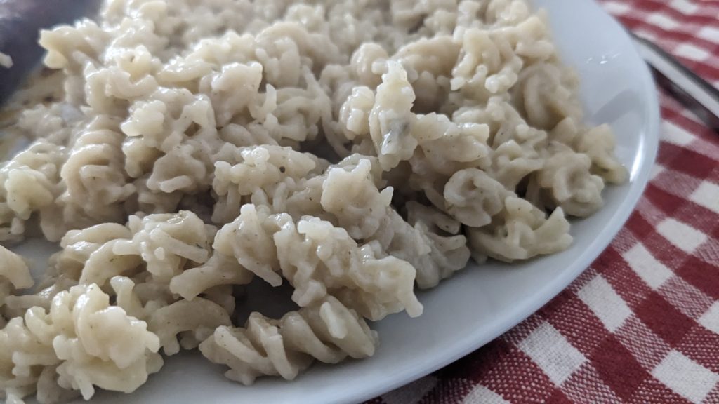 Très bon en goût, mais elles ne se tiennent pas une fois cuite. Ça se détache et de disloque. Ça change rien au gout, mais en terme de « pâtes » ça serait quand même mieux qu’elles se tiennent. Puis la sensation en bouche du coup n’est pas la plus agréable. Comme a dit mon père « on dirait du riz ».