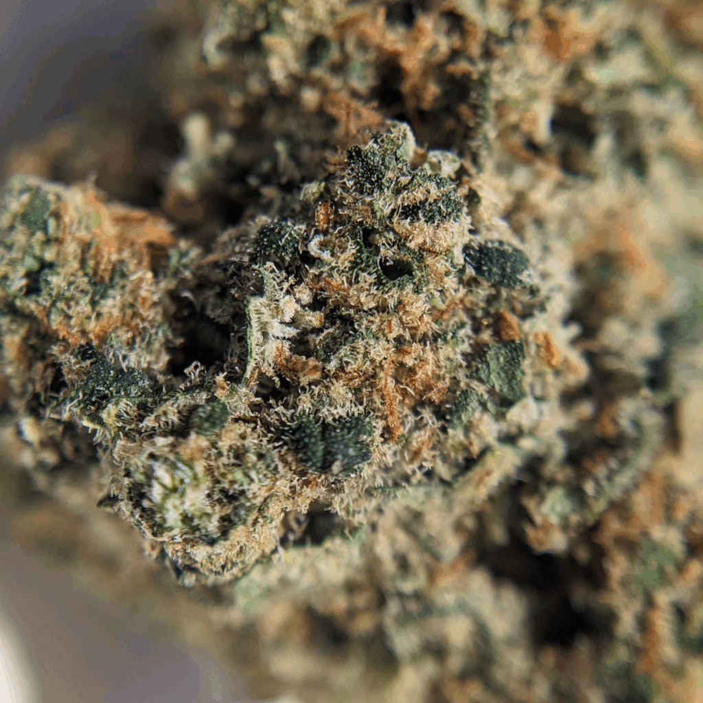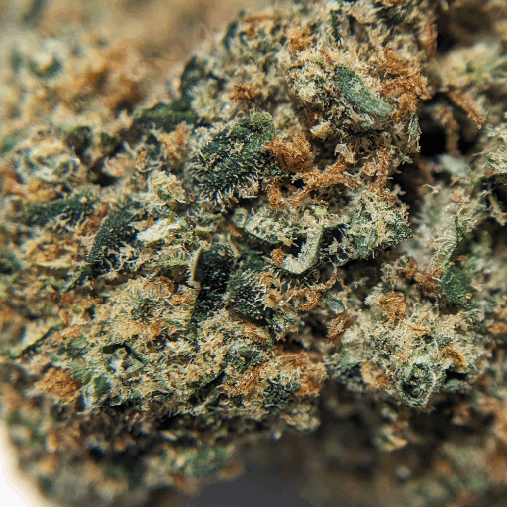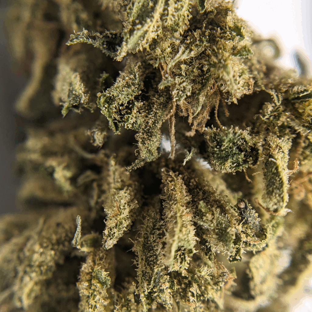 Elle est hyper fraiche et hazy ! Clairement, presque je suis dans le froid et la menthe genre. Elle porte bien son nom. Elle a aussi une acidité type bonbon qui pique non ? Bien intéressante, je kiffe. Les têtes sont belles, assez grosses, bien régulières, vertes, pleines de trichomes ambrés et de glandes laiteuses. C’est bien manucuré, les feuilles à sucre sont encore bien là, c’est beau. Elle est recouverte de glandes, vraiment ! Je remet le nez dedans, y a presque un entre deux vomi-chaussettes. J’espère certains qui liront ça le sentiront aussi haha. Grindée elle est perçante ! Bien dans le gaz, le piquant toxique, l’acidité, avec toujours des soupçons d’un bonbon. Les premières notes en basse température, je suis à fond dans l’acidité d’un bonbon bien piquant haha, c’est un délire. S’en suit beaucoup de gaz, elle est bien bien haze/diesel/gaz quoi, certains vont adorer. Je serais curieux des parents ! Banger. Gros potentiel de croisements ça !
