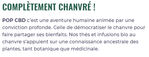 Pop CBD est une marque française qui se spécialise dans la vente de tisanes, thés et infusions au CBD.