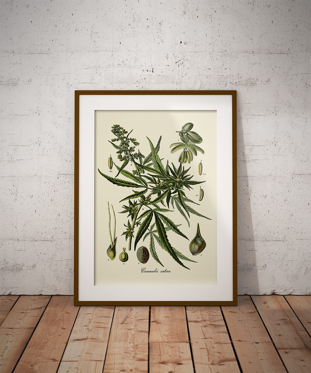 Ajoutez une élégance intemporelle à votre décoration avec ces affiches botaniquse de qualité supérieure. Inspirée des planches naturalistes du XIXe siècle, ces illustrations du Cannabis sativa L. détaille avec une précision d’orfèvre l’anatomie de la plante : feuilles, graines et fleurs y sont représentées dans un style gravure classique.