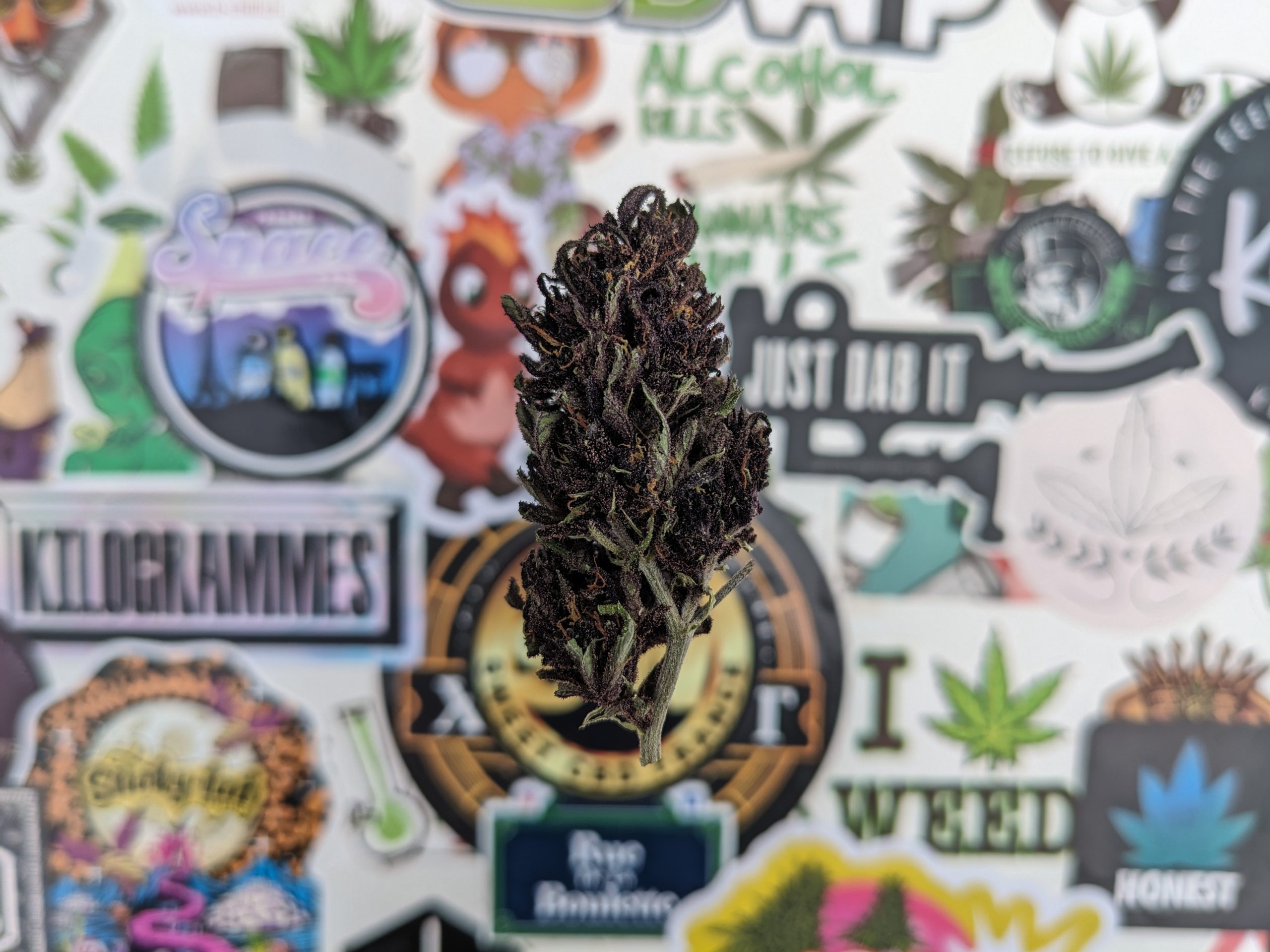 A fond dans le « purple » dès l’ouverture. A la fois floral, à la fois fruité, on reste dans des tons raisin-violette-mûre, avec un gaz assez marqué. On reconnaît bien la patte High Alpine, mais quel phéno Baba a trouvé ici ! Elle tue, j’adore ! Un côté bonbon aussi presque non ? Les têtes sont de moyenne taille, peu denses, bien violettes, avec du vert ici et là. C’est plein de trichomes ambrés, de glandes mi laiteuses mi ambrées, c’est manucuré comme il faut, pas plus encore, et le séchage est niquel, c’est encore moelleux, tout juste craquant. Top.