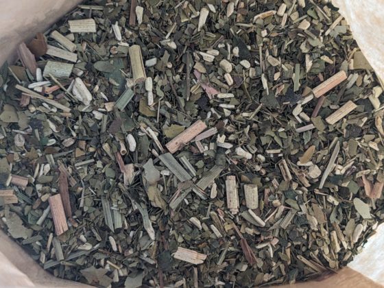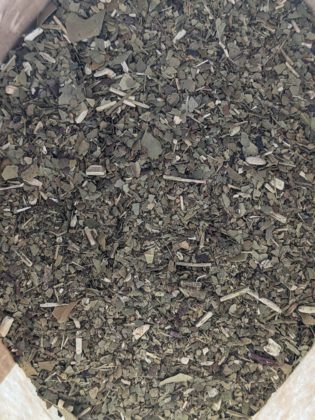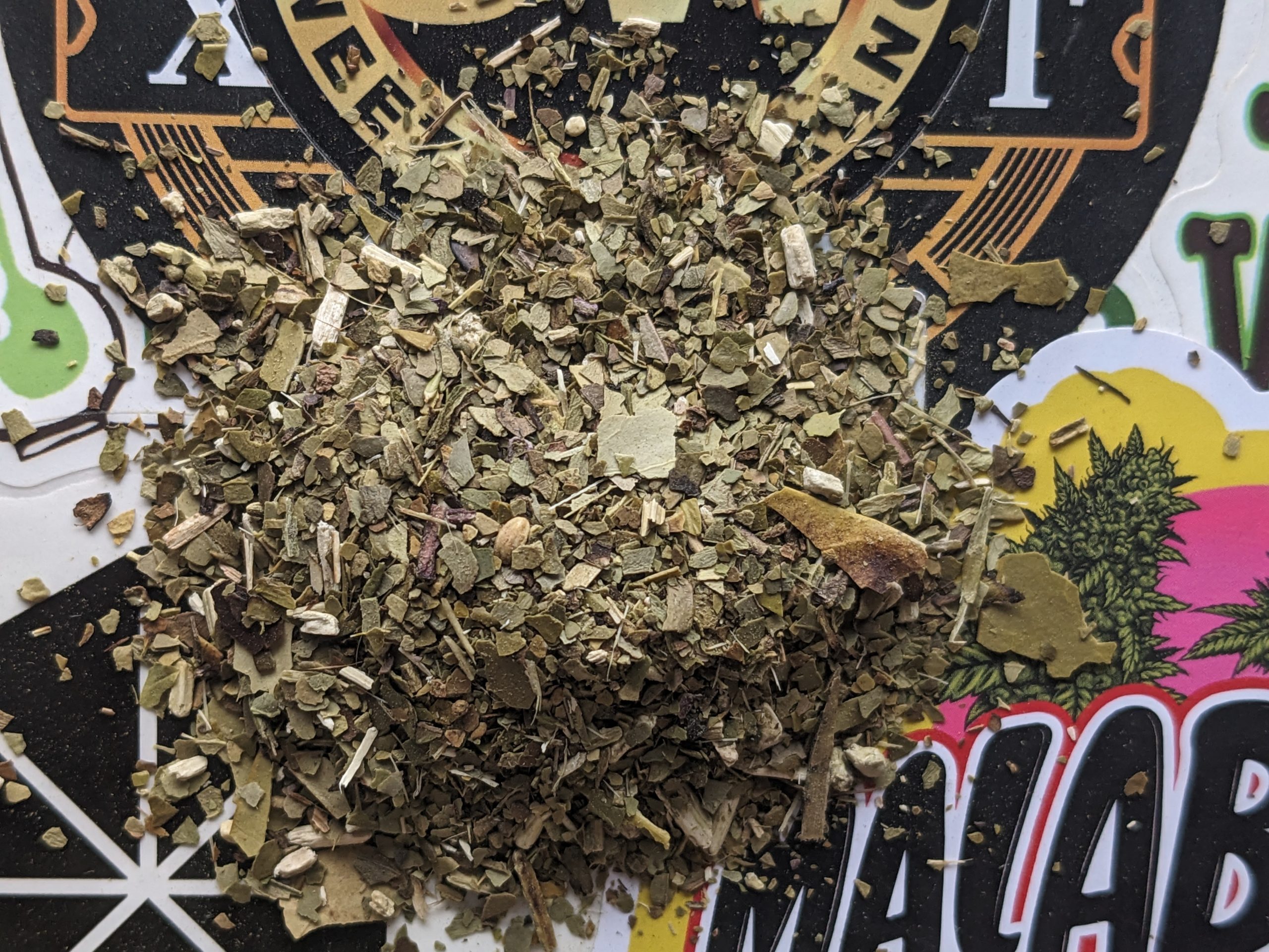 Organique cannabis : 89.7% yerba mate, menthe, citronnelle, 1% farine de chanvre, guayusa, huile naturelle