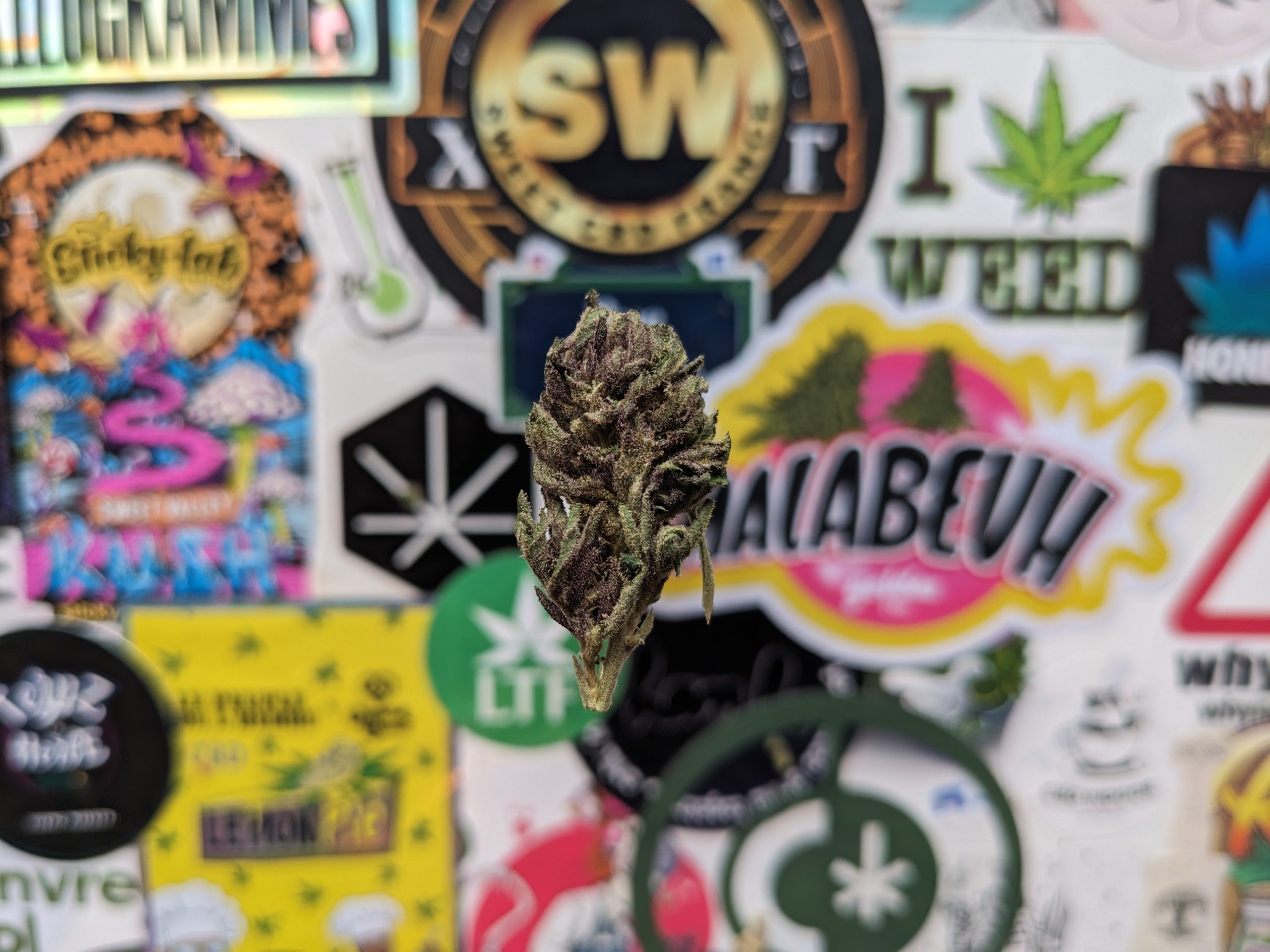 On l’avait déjà gouté et elle me plait toujours autant. Elle a vraiment ces tons gazeux typés High Alpine avec un subtil arôme de fraise/fruits rouges. La Legendary Strawberry à mes yeux haha. Les têtes sont moelleuses, certaines vertes, d’autres violettes, c’est manucuré de près mais léger. Les trichomes sont ambrés et un peu présents, les glandes sont surtout laiteuses. Grindée on dirait vraiment une Legendary avec un un phéno typé fraise quoi, c’est léger mais c’est là. Elle colle aux doigts un peu.