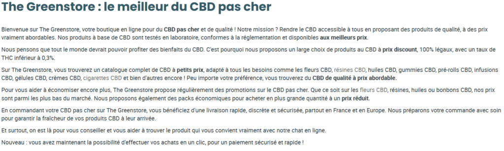 The Greenstore (voir site officiel) est une entreprise française spécialisée dans la vente de produits à base de CBD.