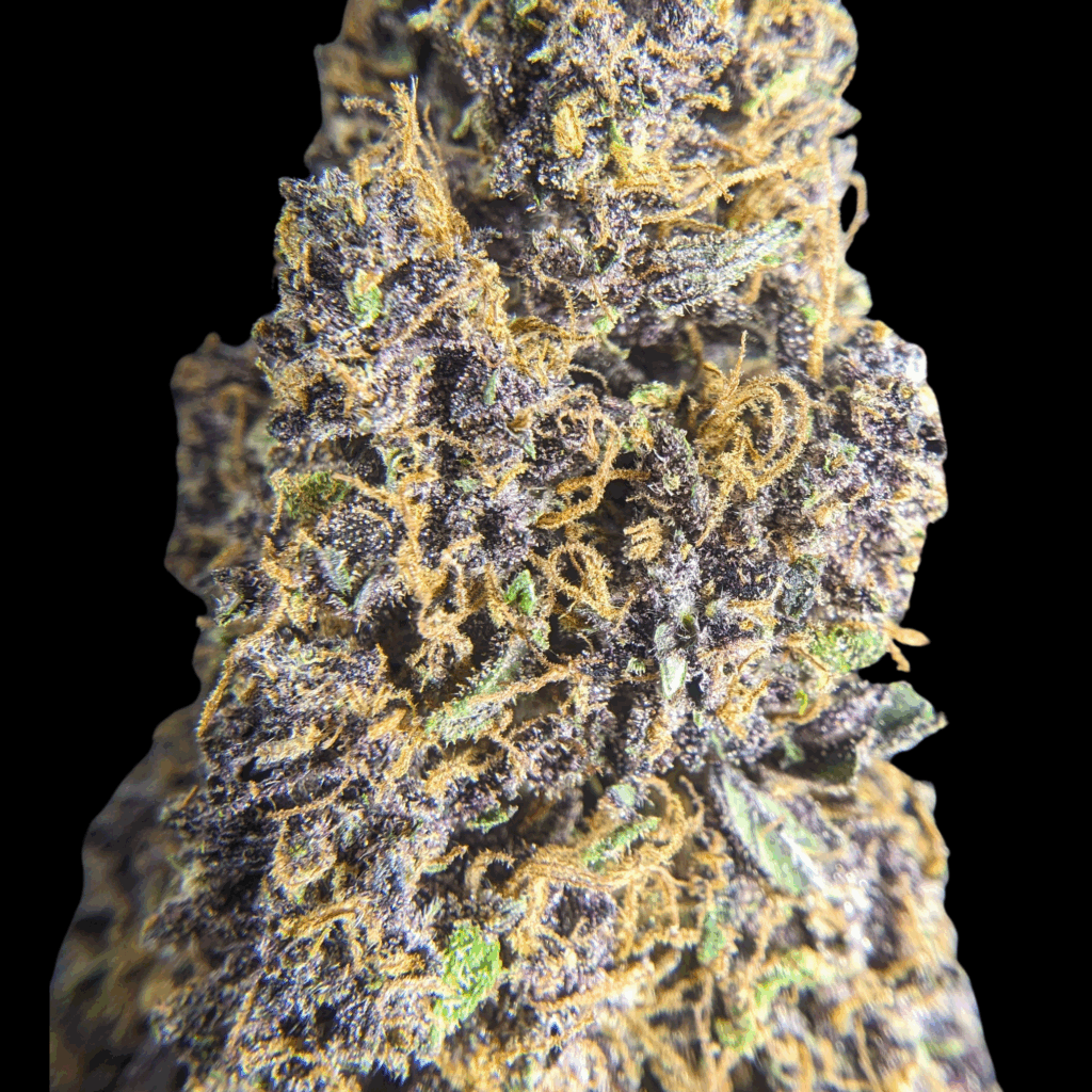 Les têtes sont belles, grosses, petites, denses, très violettes, recouvertes de trichomes ambrés, y en a de partout c’est fou. Les glandes sont principalement laiteuses. Grindée j’ai un trio qui me vient : lavande-orange-raisin,