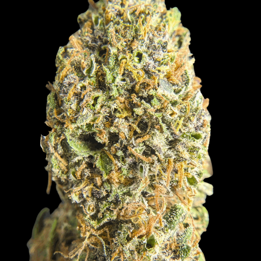 C’est bien gros, dense, vert, plein de trichomes ambrés et de glandes mi laiteuses mi ambrées. Grindée elle me fait penser aux sucettes à la crème/café là, un peu blanches/jaunes pales, vous voyez ? Le côté crème reste dominant, mais ça gagne en acidité, en vibe « bonbon ».
