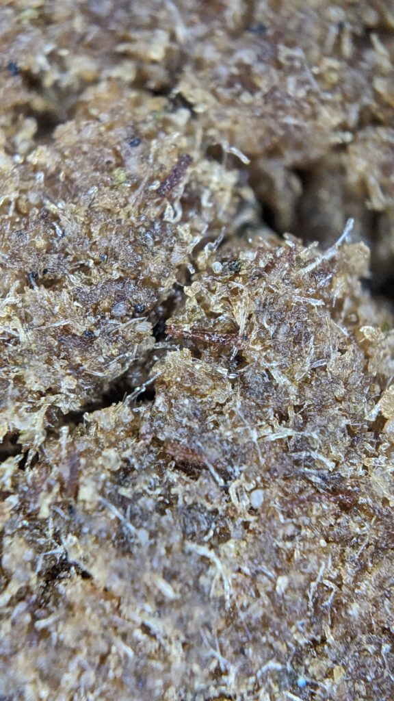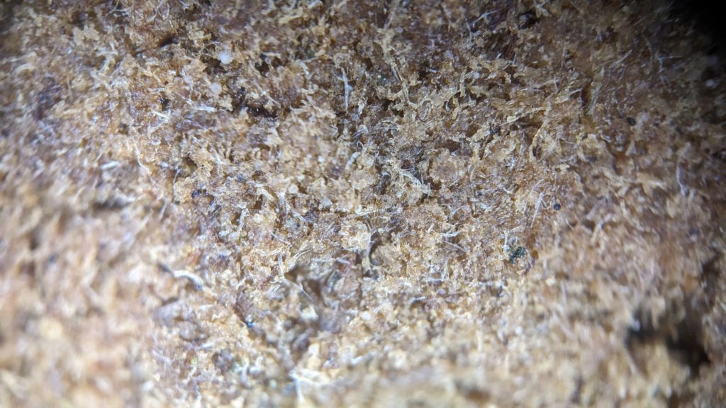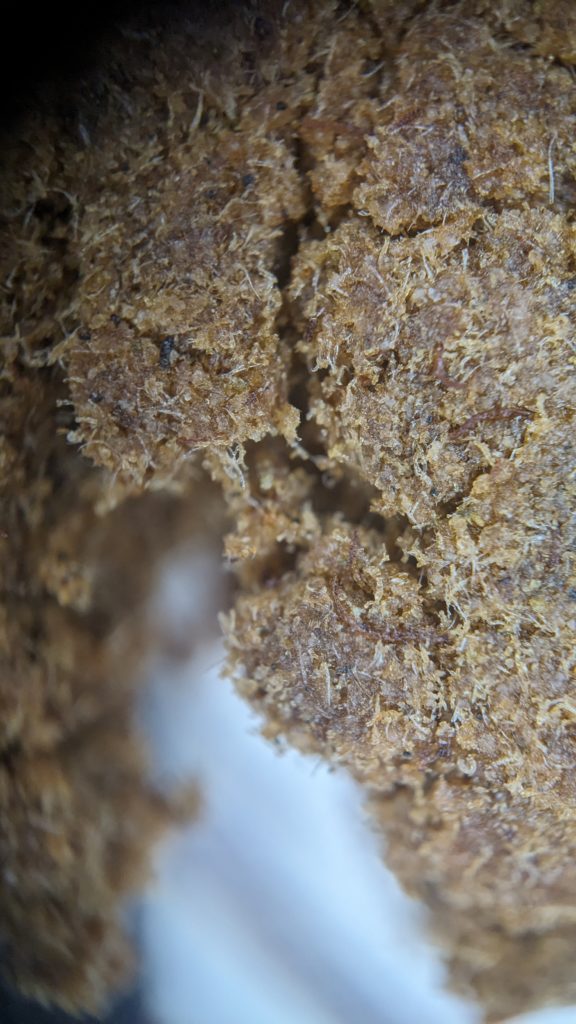 Oignon, chips au poulet ou au barbecue, j’ai du fumé aussi qui me vient. Dinguerie à l’ouverture ! Il est mignon, d’un beau marron éclatant, un peu brillant, fondant. A la loupe d’ailleurs ça se voit direct, il est magnifique. De la glande laiteuse à très ambrée, des trichomes ambrés également, c’est régulier, c’est propre. Rien à dire !