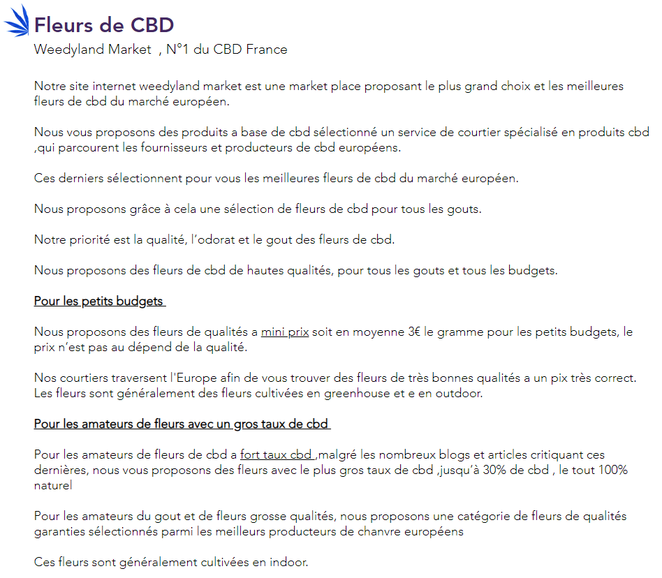 Weedyland (lien) est une entreprise française spécialisée dans la vente de produits à base de CBD.